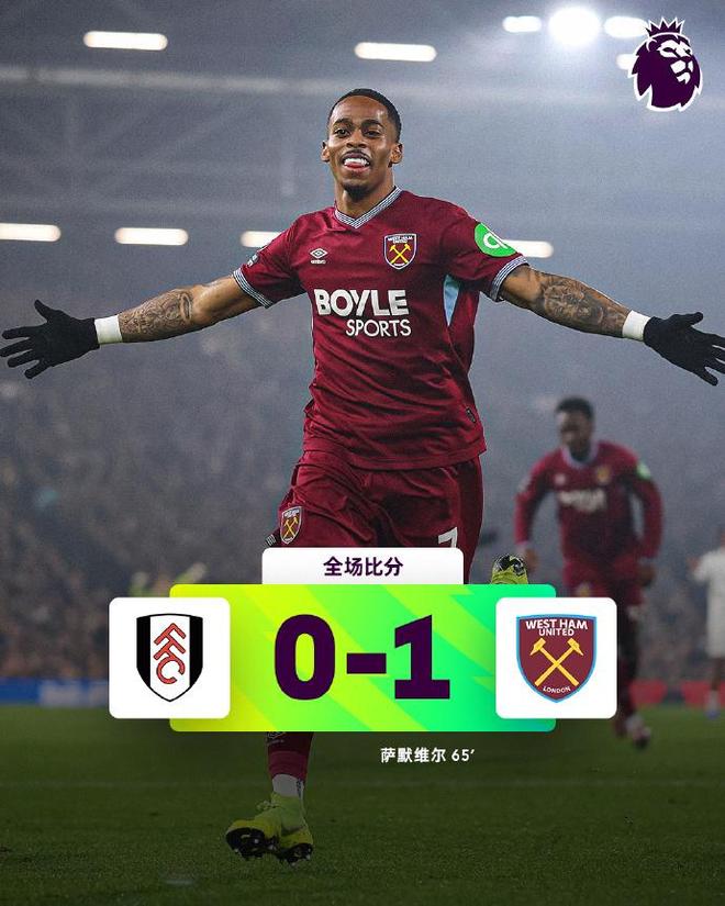 富勒姆0-1西汉姆联